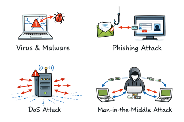 Viruses and malware: Harmful software that can infect systems.