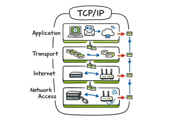 Every device in a network follows rules to communicate, known as protocols. The most common set of protocols is TCP/IP (Transmission Control Protocol/Internet Protocol).